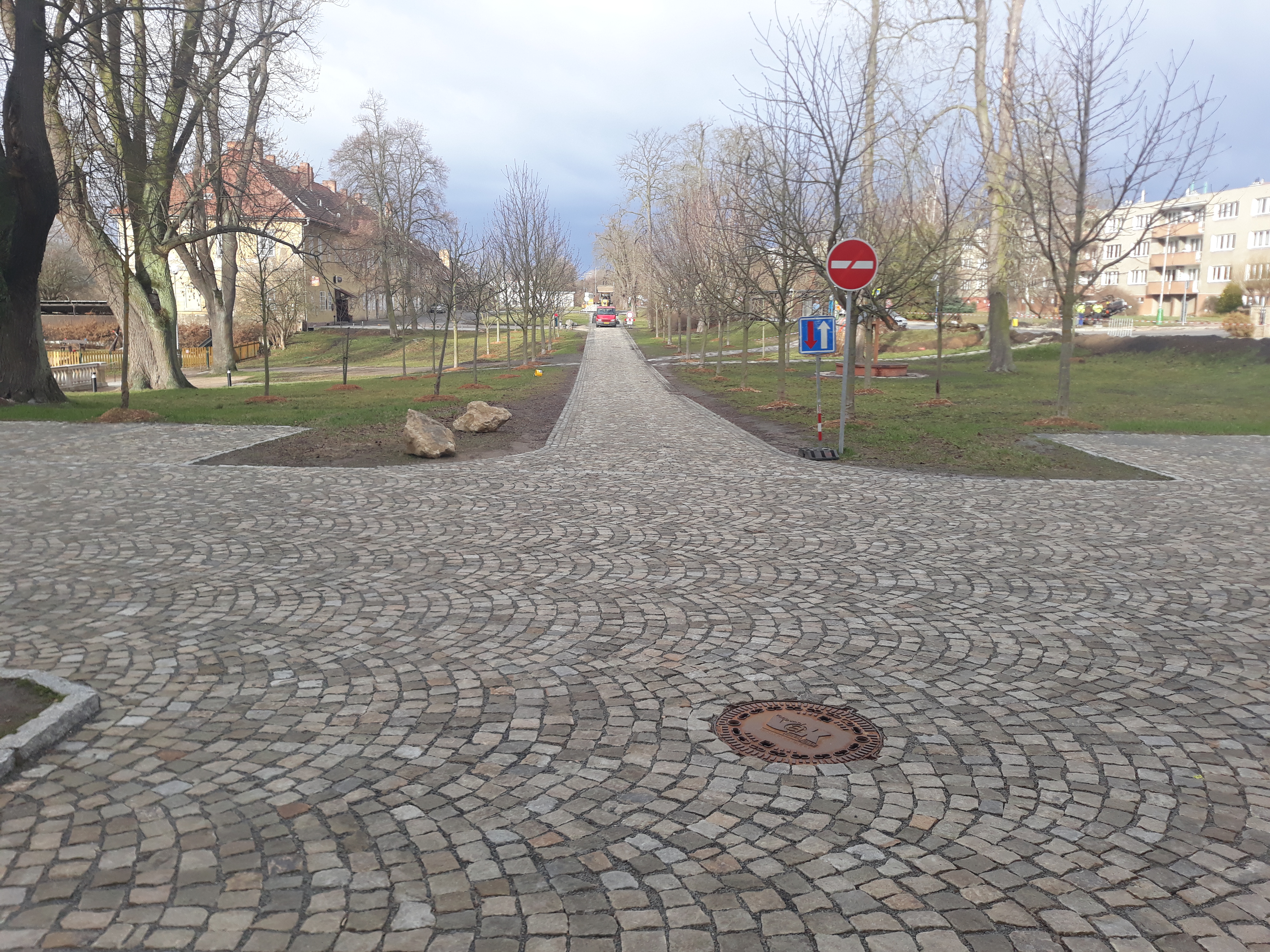 Úpravy ploch jihozápadně od zámku ve městě Kosmonosy včetně ozeleněné cesty. Součástí stavby byly sadové úpravy, silnoproudé rozvody, kontejnerové stání a dopravní značení.