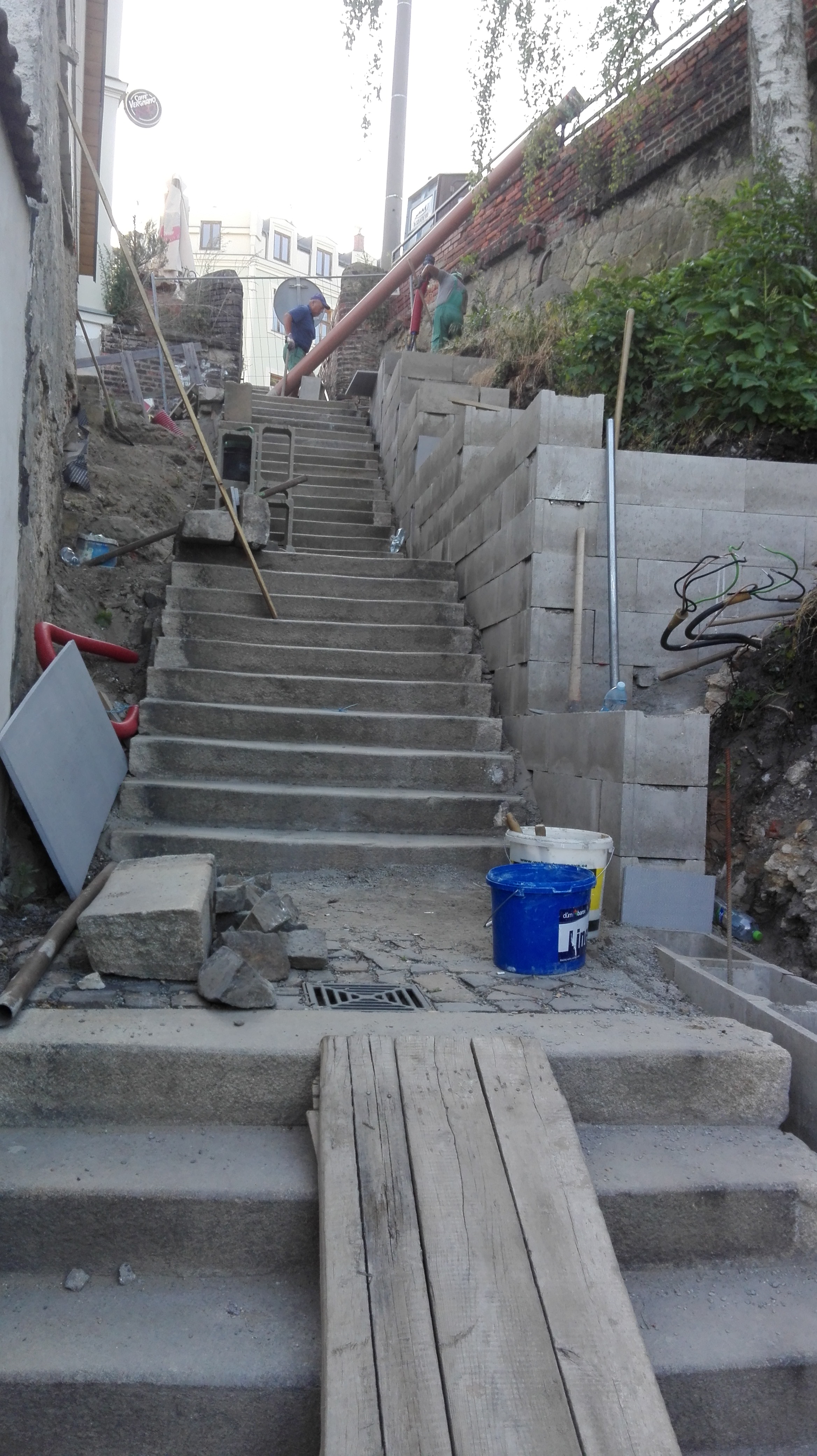 Rekonstrukce schodiště zahrnovala spočívala ve vybourání konstrukcí z kamene, betonu a cihel a znovuosazení kamenných schodišťových stupňů, předláždění mezipodest, vybudování nosné zdi ze ztraceného bednění a železobetonu. Zřízení nového zábradlí a oprava stávající kamenné opěrné zdi.